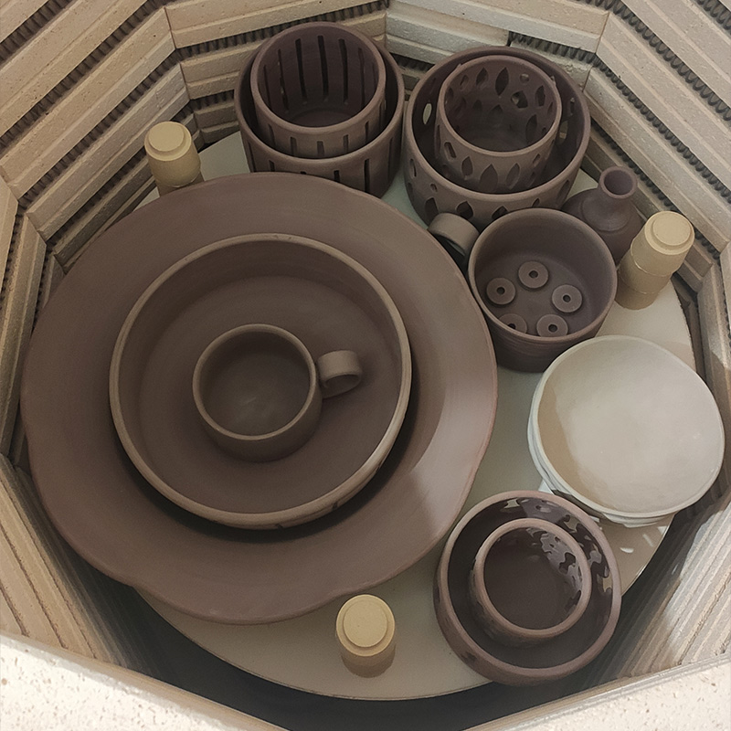 Du hast keinen eigenen Keramik-Brennofen und suchst in Karlsruhe eine Möglichkeit deine Werke zu brennen? Ab einer halben Ofenplatte brennen wir deine Werkstücke gerne in unserem großen 200 L Rohde Toploader mit (Steinzeug-Brand).