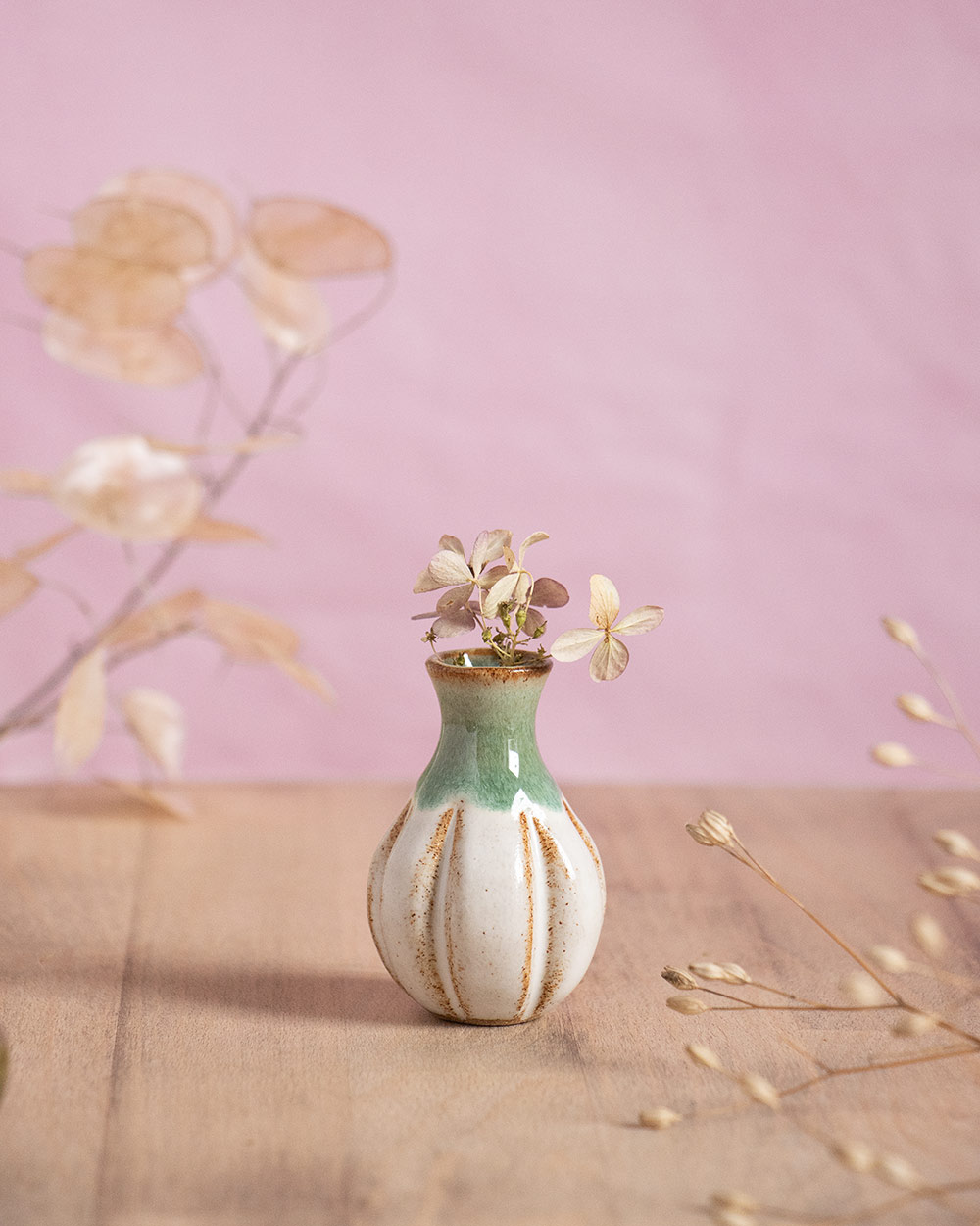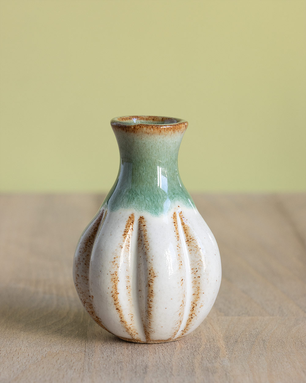 Der Frühling steht vor der Tür, Vorfreude! Diese kleine bauchige Vase wurde frei auf der Töpferscheibe gedreht. Nach dem Drehen wurde sie noch mit einem selbst hergestellten Werkzeug verformt bzw. eingekerbt. Sie ist perfekt für einen Ministrauß oder ein einzelnes Blümchen oder Ästchen. Ihre besondere Form macht sie auch ohne Blumen zu einem kleinen Blickfang.