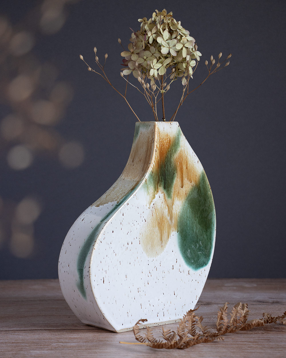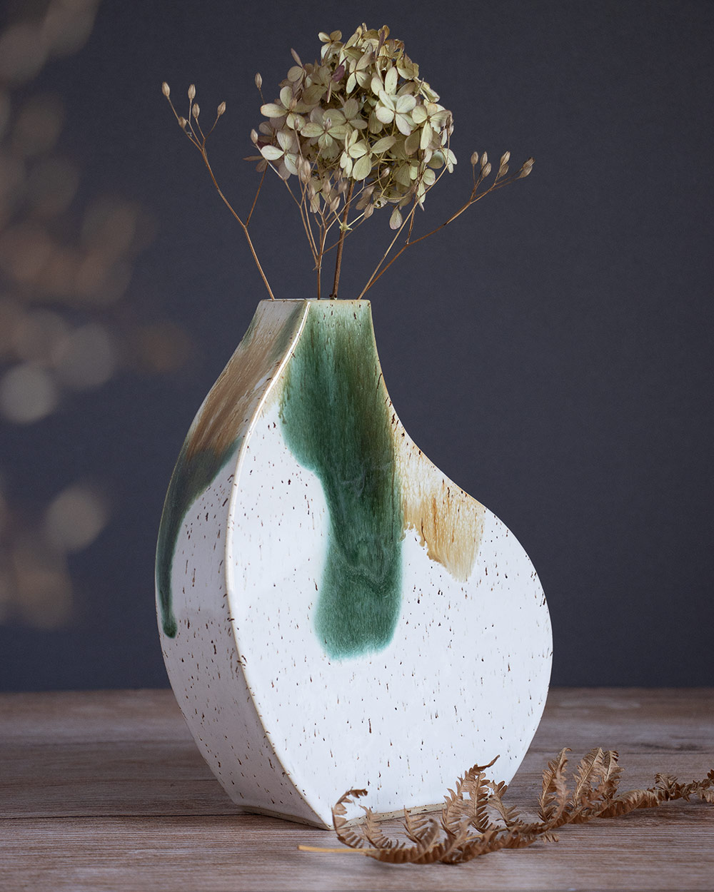 Die Vasen dieser Serie wurden mit Hilfe der Plattentechnik und selbst gemachten Schablonen gefertigt. Jede Vase hat ihre individuelle Silhouette. Die harten Kanten erzeugen dazu einen spannenden Kontrast.